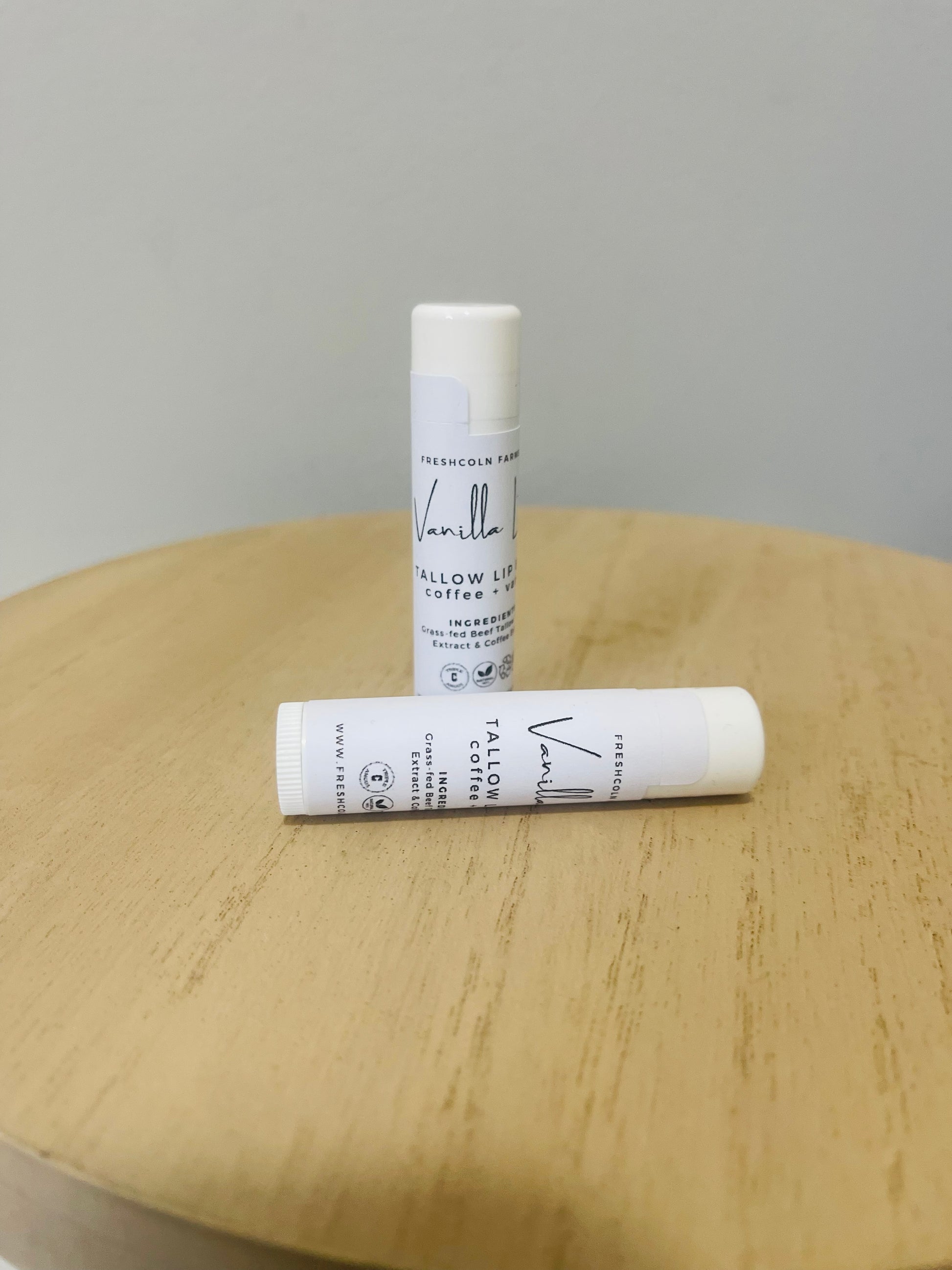 Introducing the Vanilla Latte Tallow Lip Balm — a limited-edition release inspired by early mornings on the farm and that first, perfect sip.